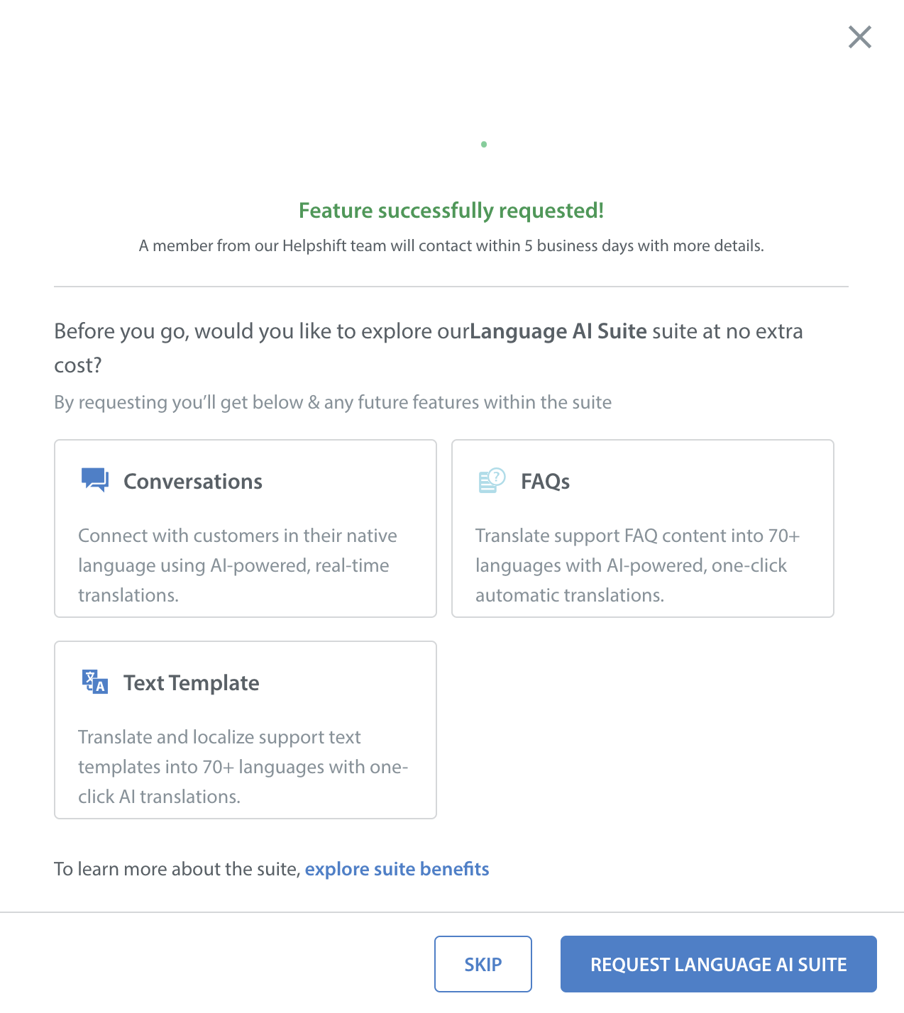 - Your request for the feature will be sent successfully.