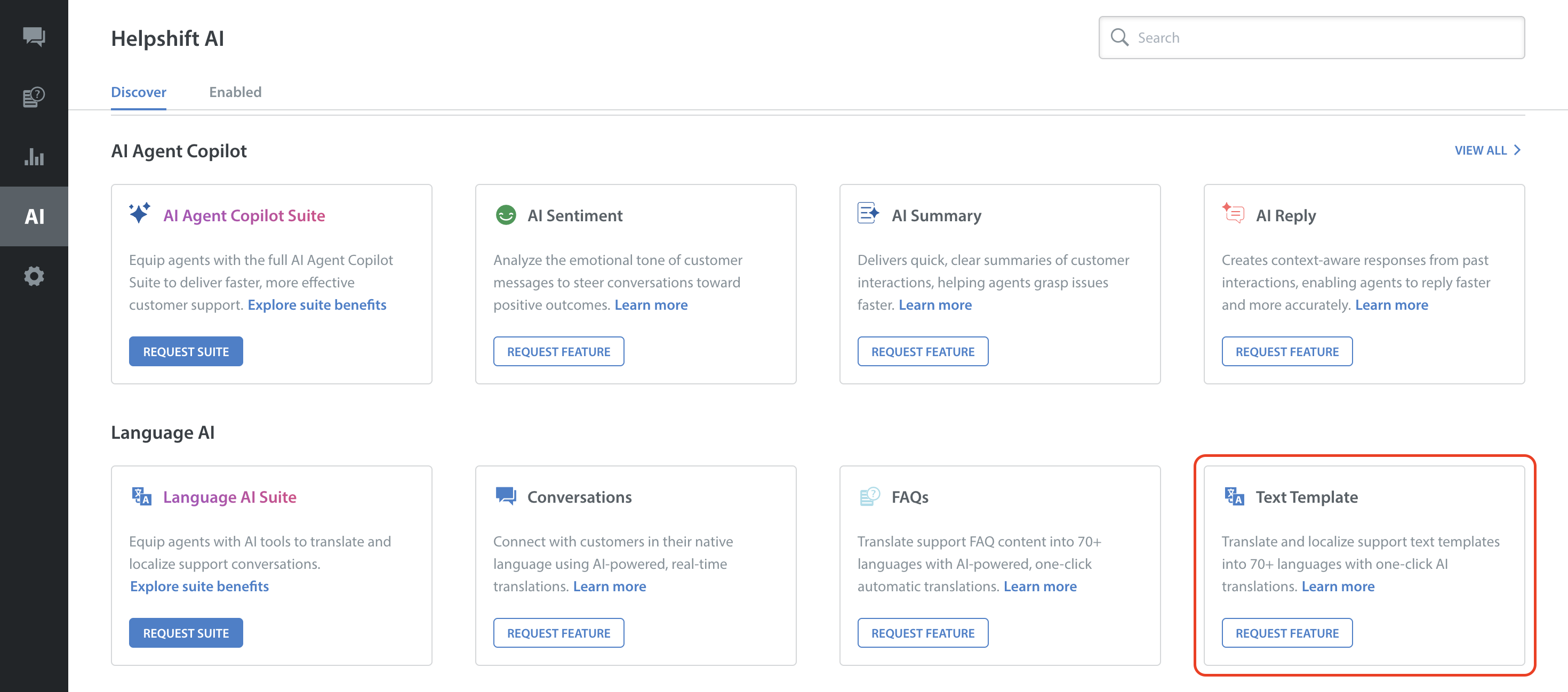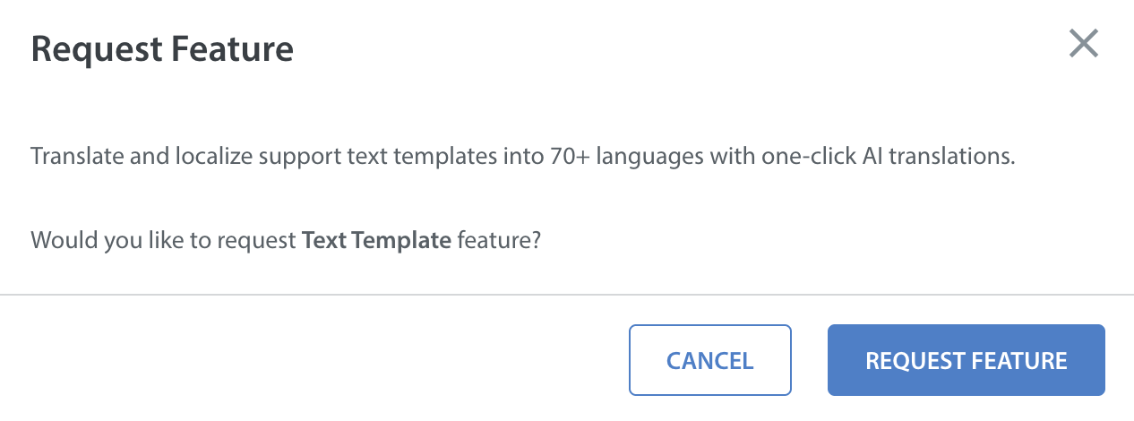 - Click REQUEST FEATURE under Text Template card of Language AI.