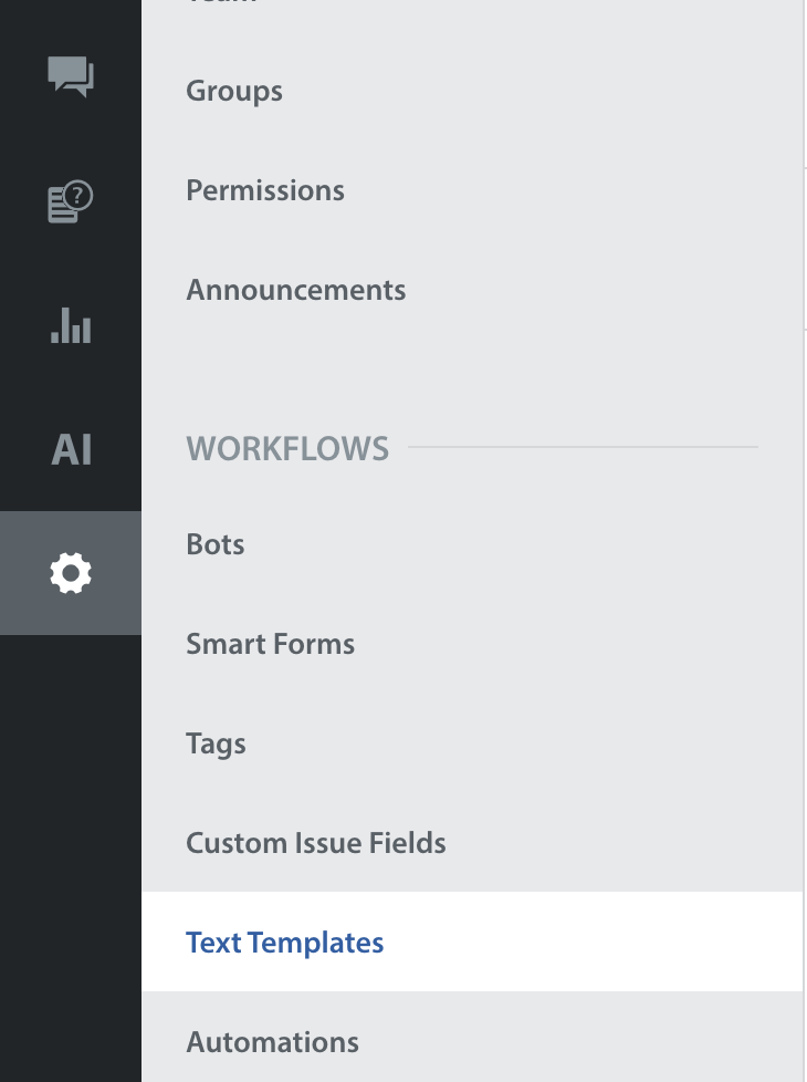- Click Text Templates in the WORKFLOWS area.