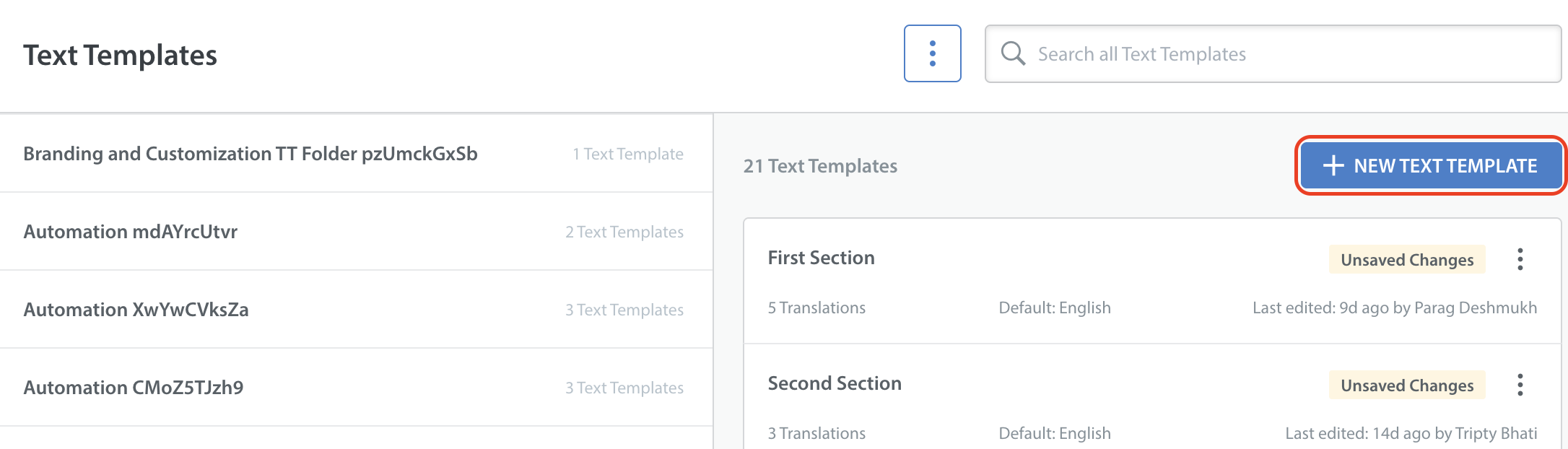- Once the feature is enabled, you can translate Text Templates using Language AI for Text Template translations.