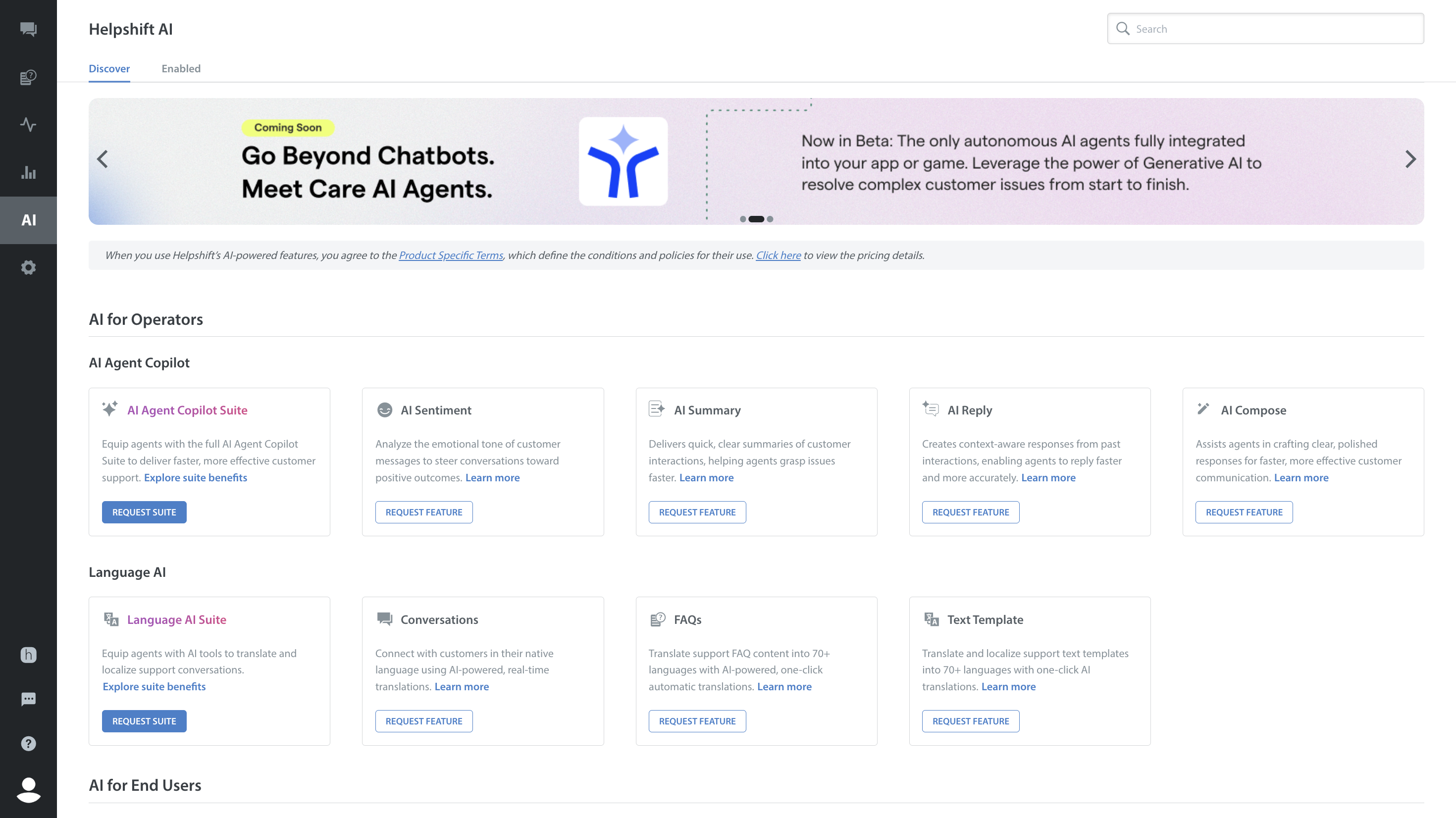 Note: You can either choose to request for a whole AI Suite such as AI Agent Copilot, Language AI Suite or request features individually.