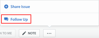 You can follow up on an in-app Issue by navigating to the Issue details pane, clicking the ellipsis button, then selecting ‘Follow Up’ in the list of options.