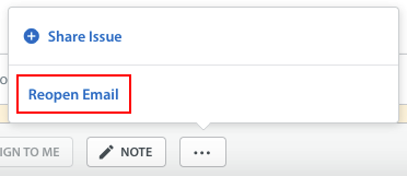 To reopen an email Issue, navigate to the Issue details pane, then click the ellipses at the bottom. In the menu that appears, select ‘Reopen Email’.