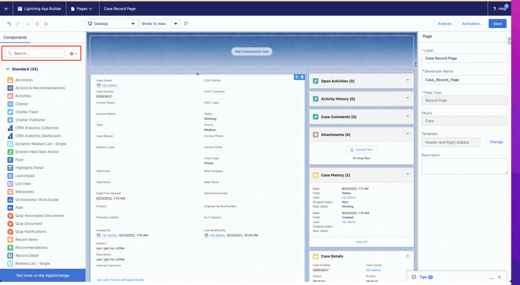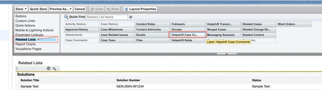 Click on ‘Related Lists’ and then drag ‘Helpshift Case Comments’ the Related Lists section of the Case Page Layout.