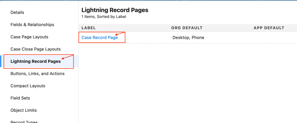 Click on ‘Lighting Record Pages’ from the left pane and then Select ‘Case Record Page’.