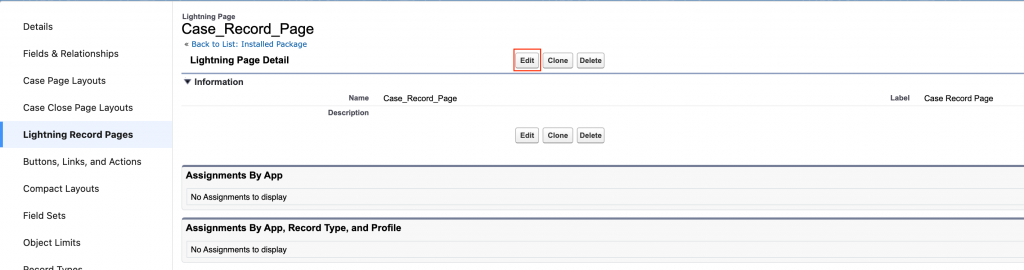 Next, click ‘Edit’ and then you will be landed to Lightning App Builder of Salesforce.