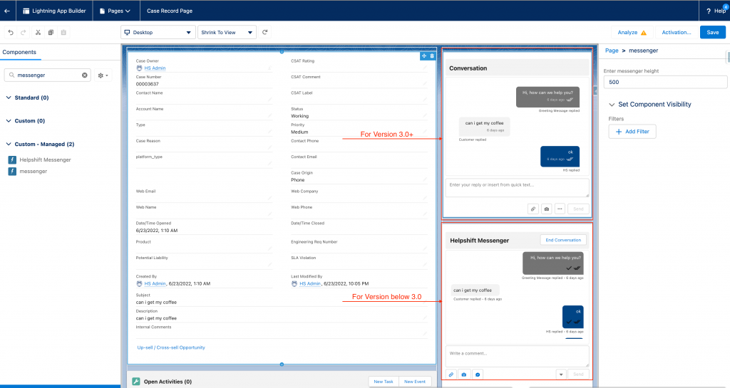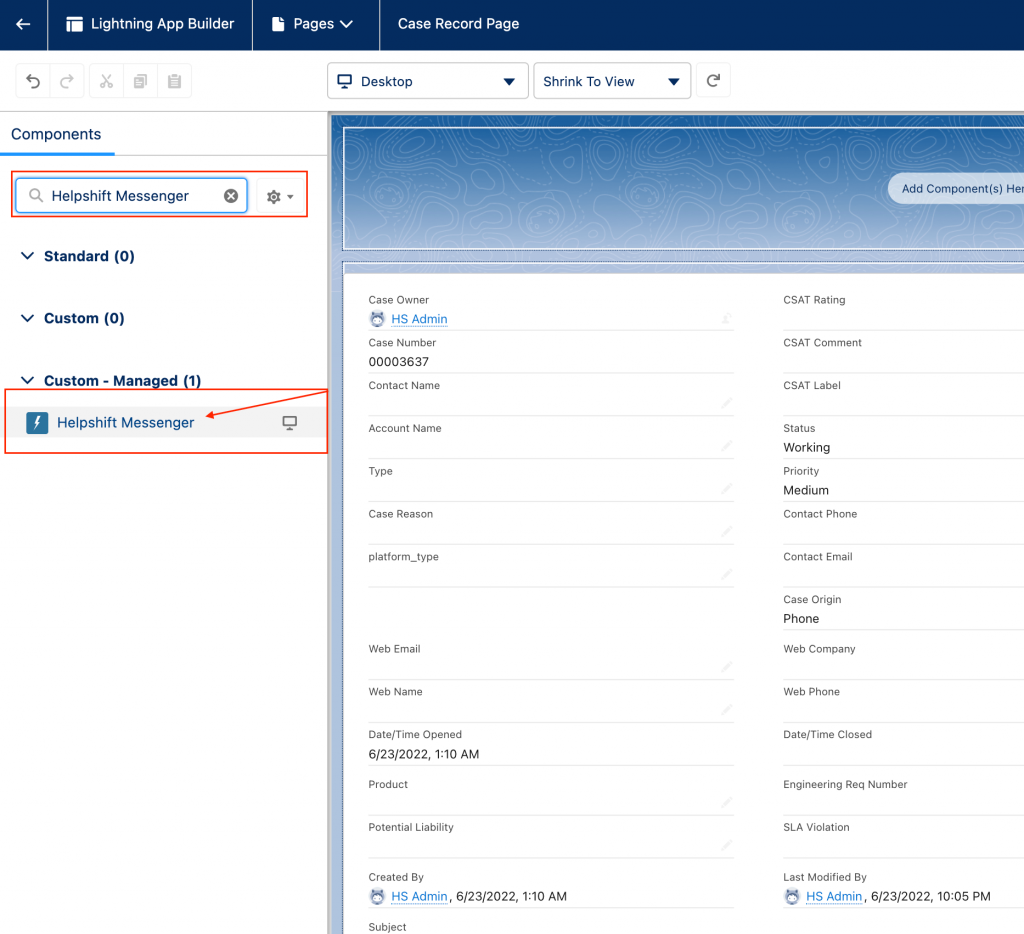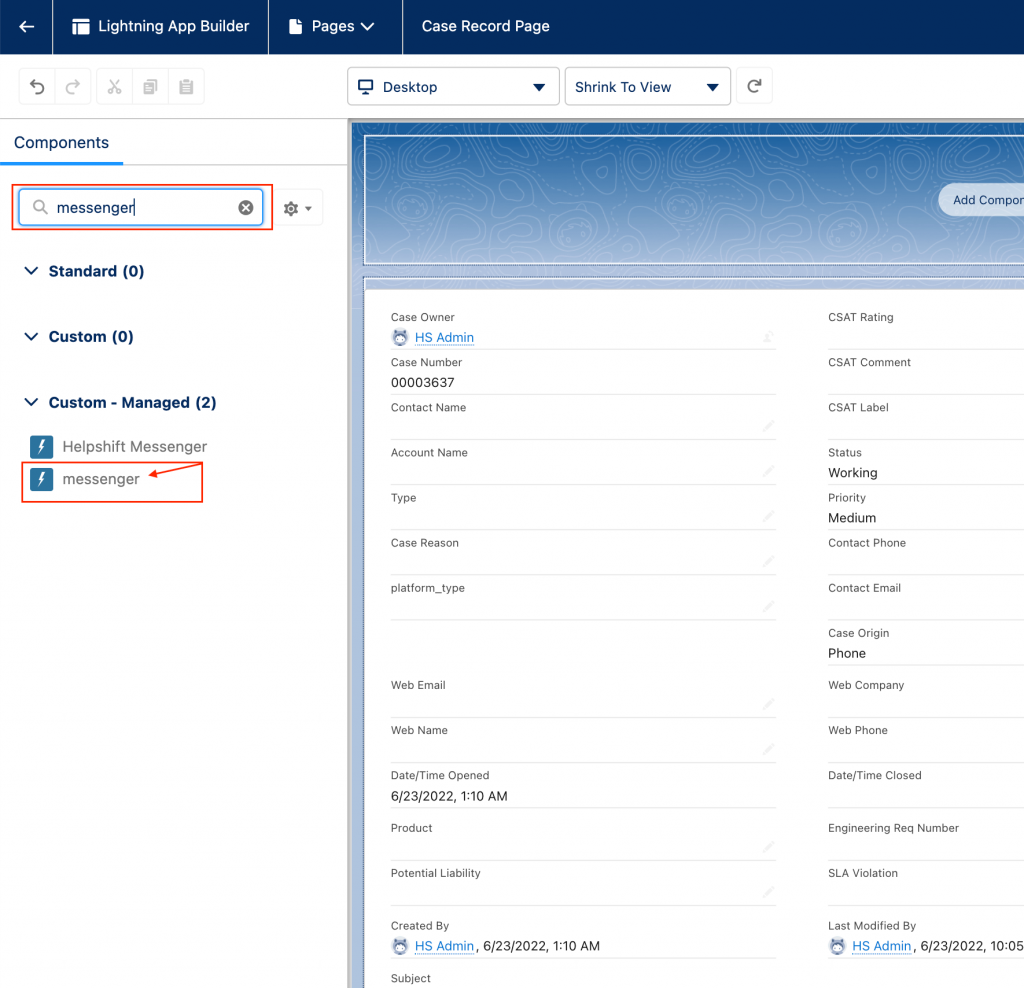 Helpshift Messenger allows Agents to work on Helpshift Messages right from the Service Cloud console. The steps below outline how the Salesforce Admin can add the messenger to the Case Layout.
