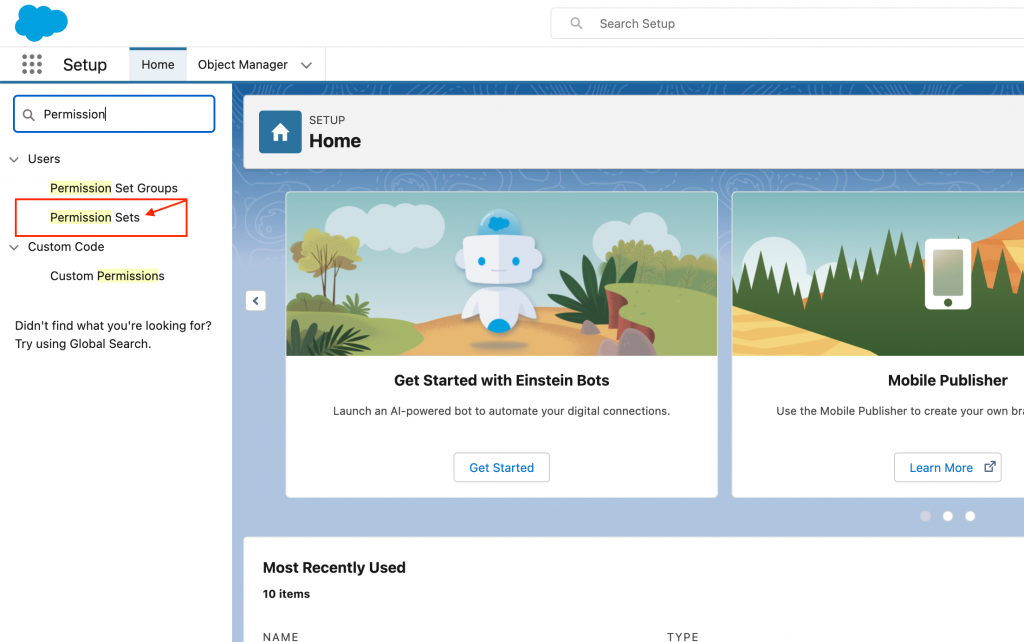 From here, search ‘Permissions’ in the Quick Find box, then click ‘Permission Sets’.