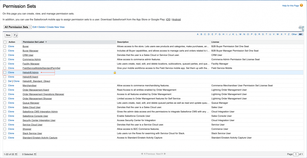 Click ‘Helpshift Admin’ from the Permission Set Label.