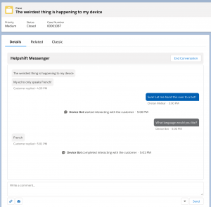 Our Salesforce Integration allows you to manage your Helpshift Dashboard from directly within Salesforce. You can use the app to invite and assign Agents and Admins; sync FAQs, Issues, Custom Issue Fields, and tags; reply to Issues from within Salesforce; and more.