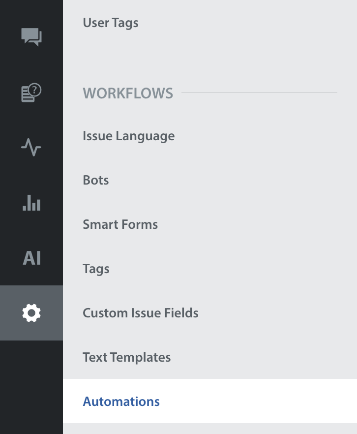 You’ll use a New Issue Automation to create the Autoresponse, so it’s helpful to be familiar with these prior to completing the steps below. For a refresher, please review How do I set up a New Issue Automation?