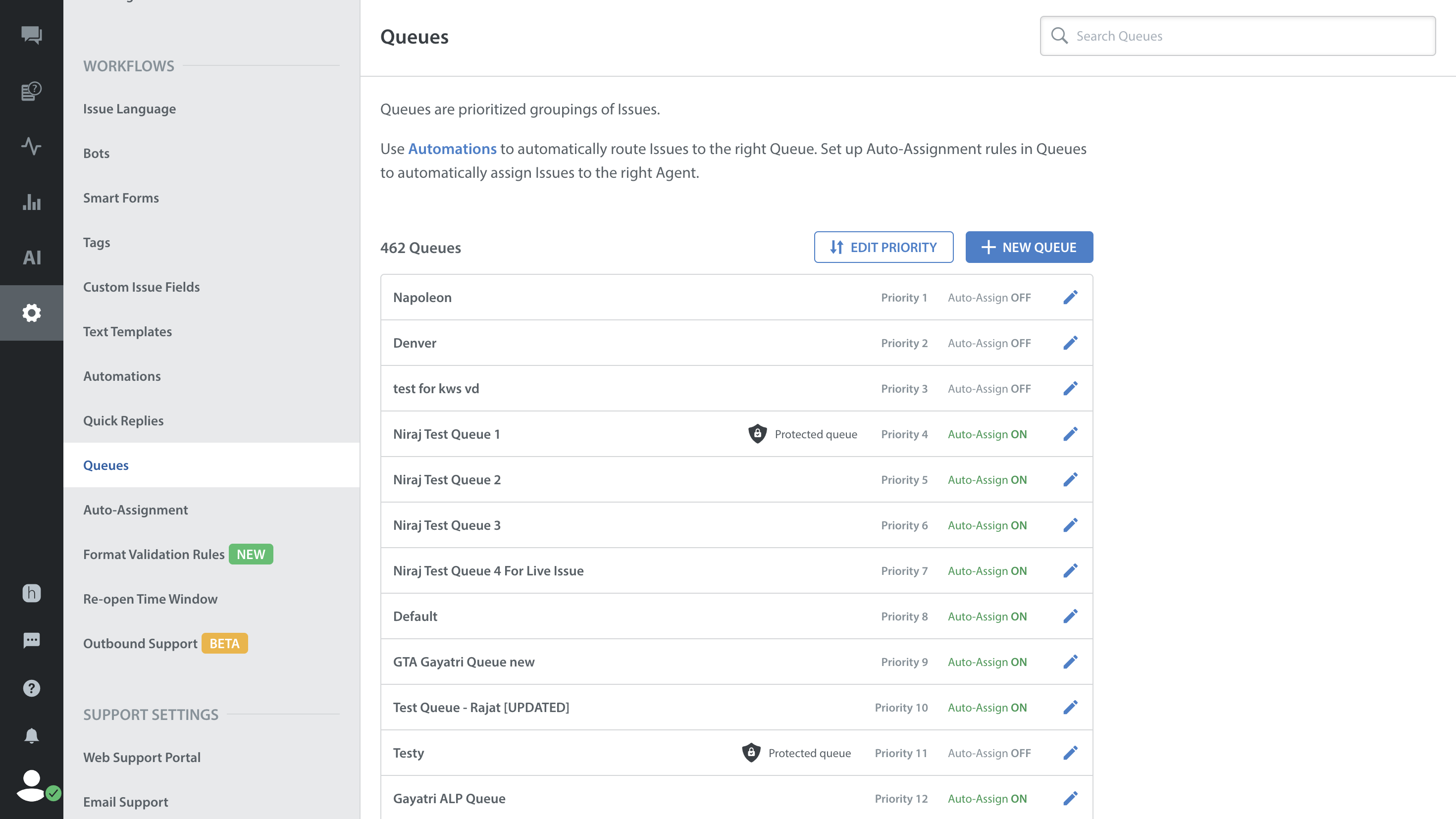 1. Navigate to the Queues page via Settings > Workflows > Queues