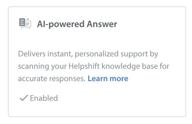 Note: Once the feature is requested, a representative from our team will reach out to you. - Once the feature is enabled for your domain, you will see the card change to Enabled.