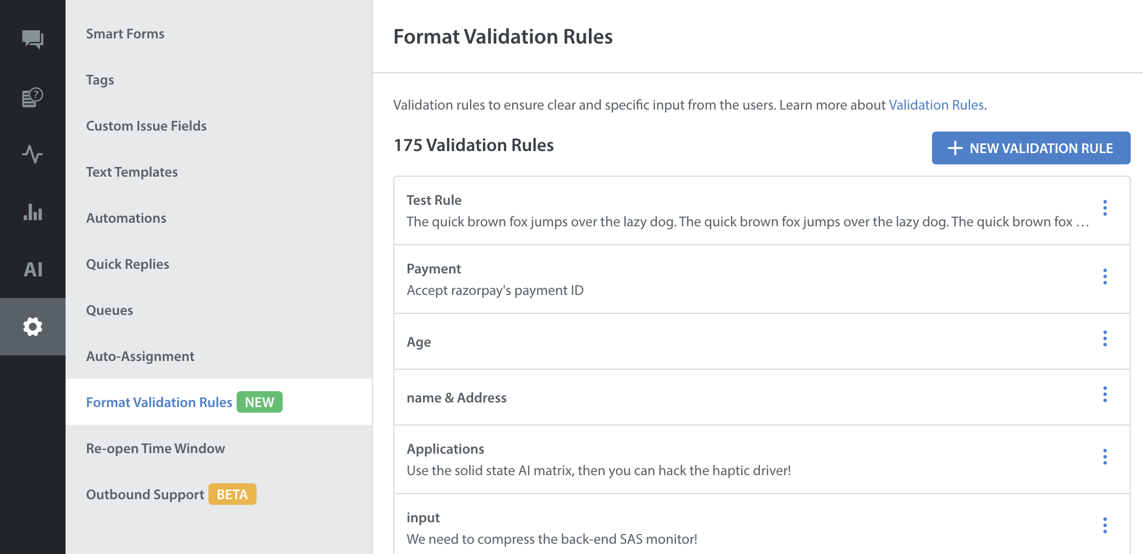Once you have created a format validation rule, click here to see how you can configure it in Custom Bots.