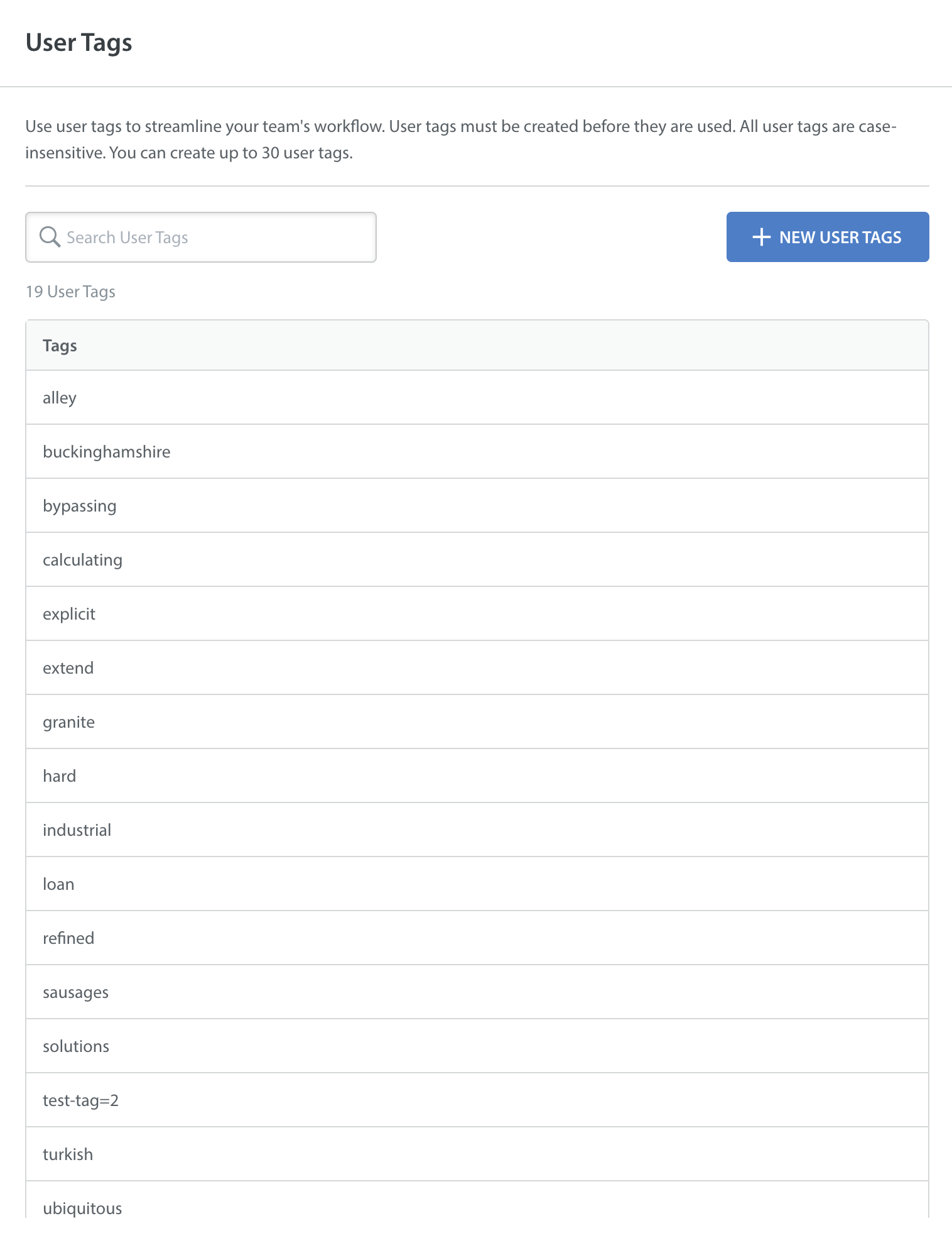 User tags help streamline workflows by allowing agents to label users for easier management. These tags must be created before they can be added to profiles. Each tag is case-insensitive, and you can create up to 30 tags.