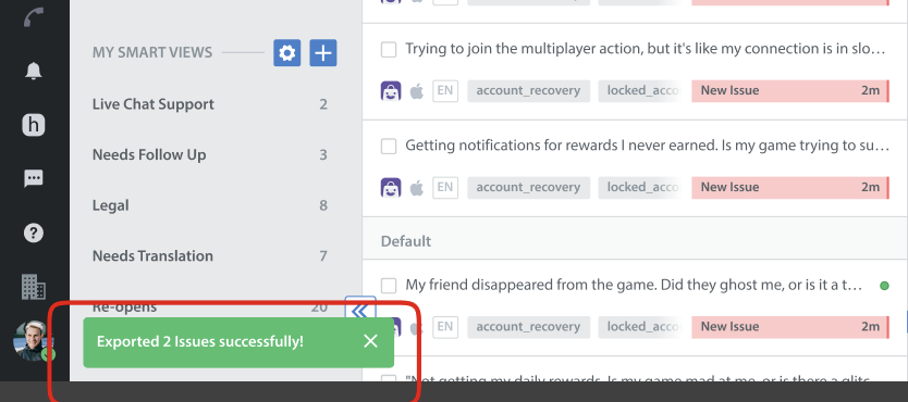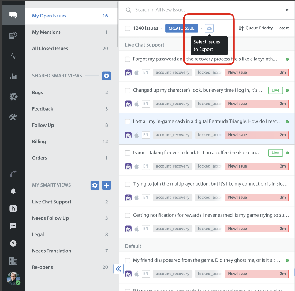 The Export Issues as CSV capability allows teams to quickly download issue data from the Helpshift Dashboard in a clean, structured CSV format. This enhancement makes it easier for admins, supervisors, and agents to extract, customize, and share issue information seamlessly to gain more actionable insights.