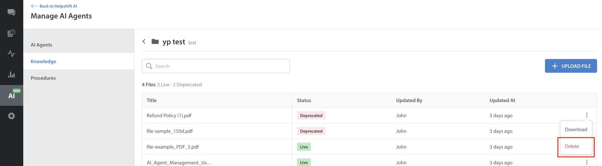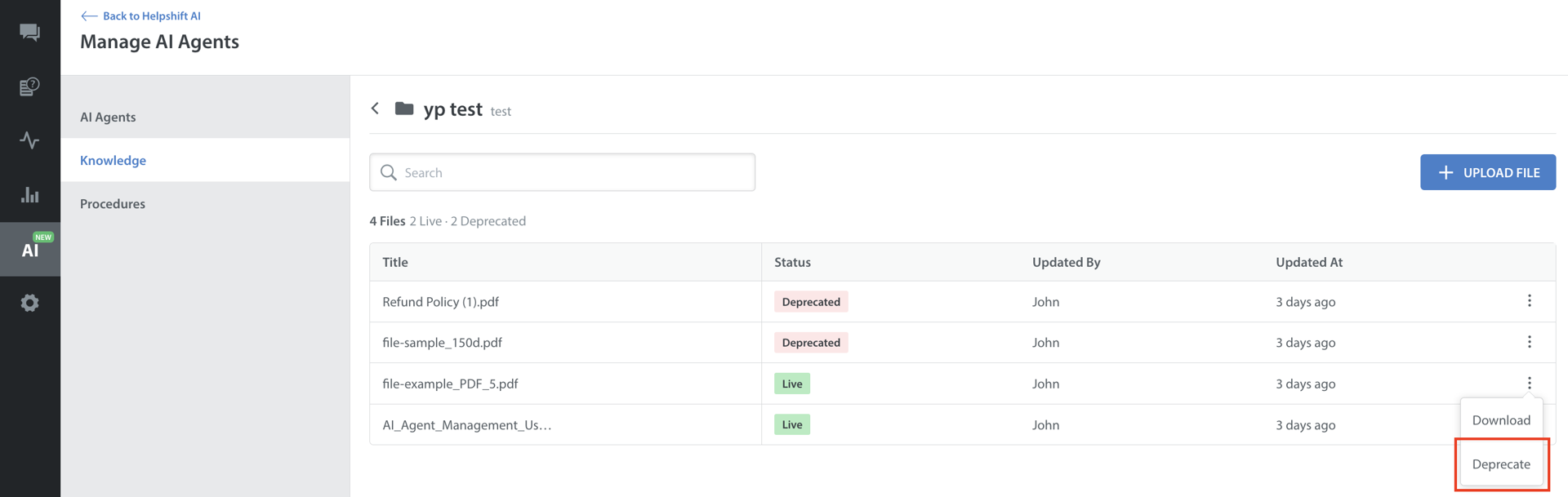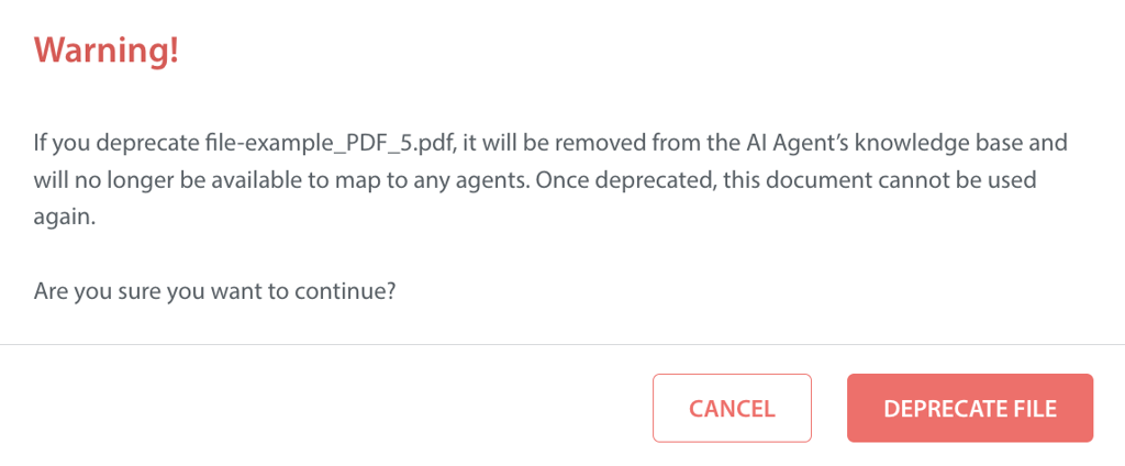 Note: Deprecated documents cannot be made Live again. Only Live documents are used by the Care AI Agent.