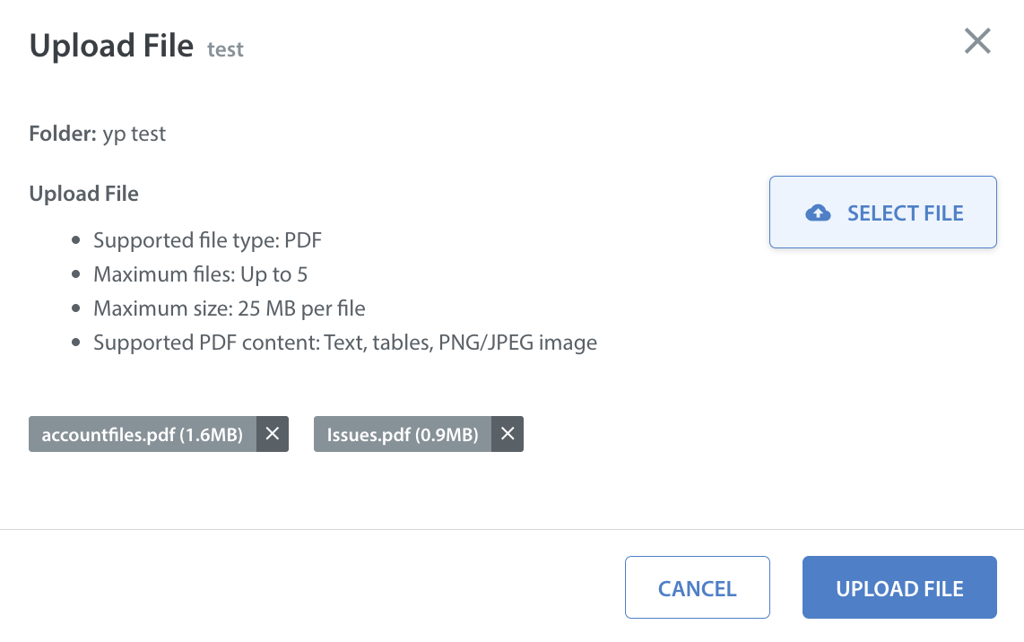 Note: Ensure that all uploaded files meet the requirements for file size, supported format, and maximum file limit.