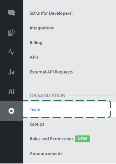 - In the navigation pane, scroll to the ORGANIZATION area. Then, click Team.