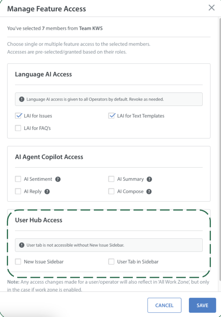 The selected team members will now have access to User Hub based on the permissions granted.