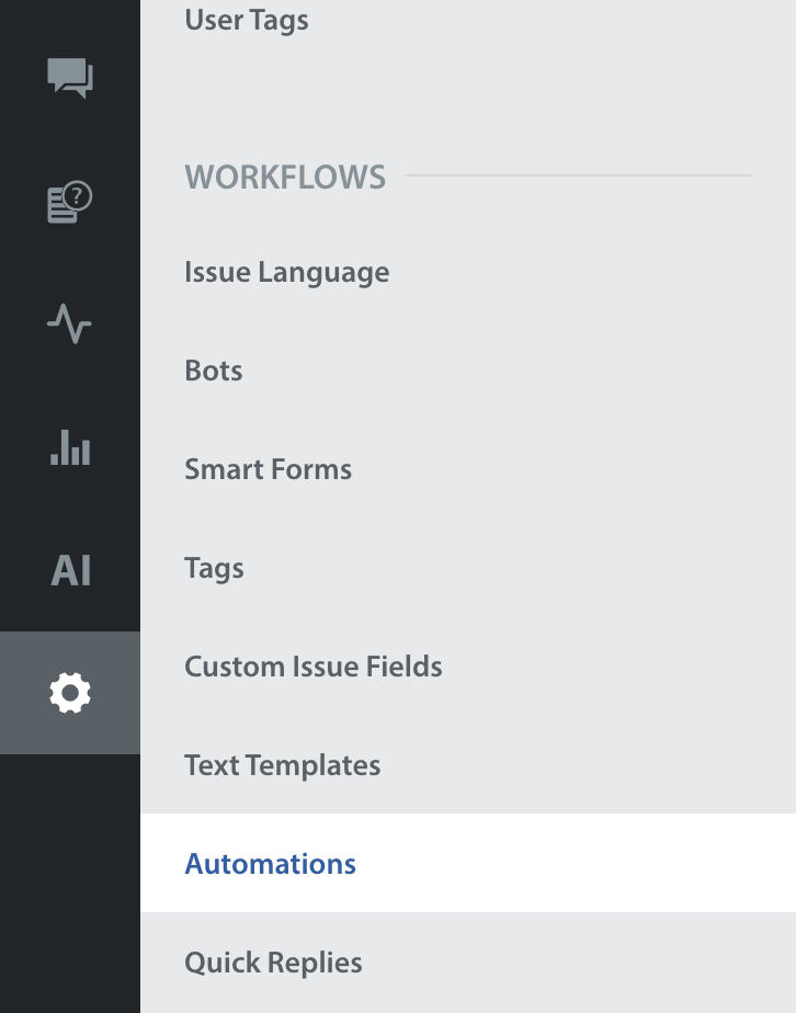 Step 3. In the navigation pane, scroll to the WORKFLOWS area, and then click Automations.