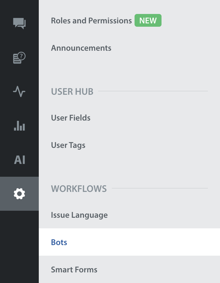 - In the navigation pane, scroll to the WORKFLOWS area. Then, click Bots.