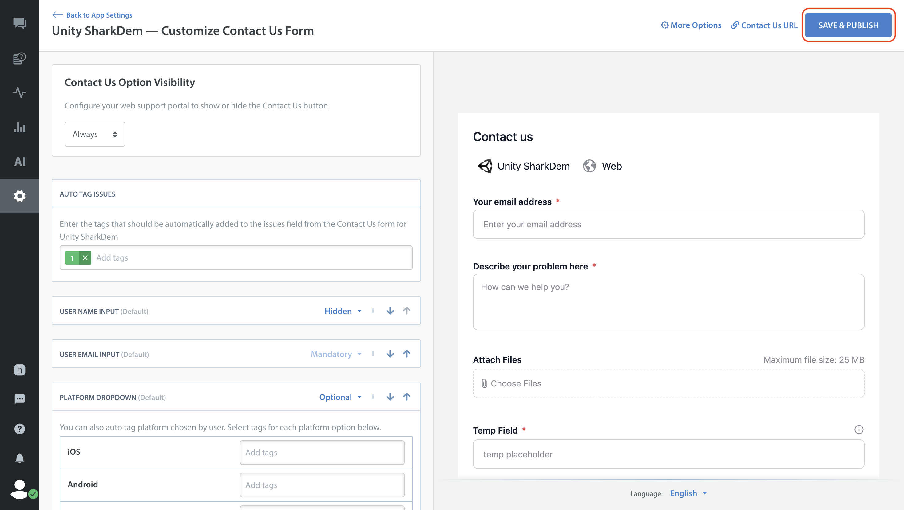 - Configure the form settings and values as needed. Then, click SAVE & PUBLISH.