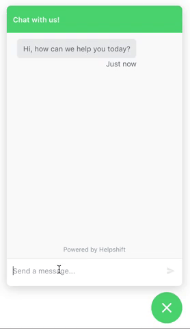 You can test the Web Chat widget by starting a chat as an end-user and then replying to yourself as a Helpshift Agent. To do so, reload your webpage with the code snippet added above, then type text into the ‘Send a message’ space to initiate a chat as an end-user.