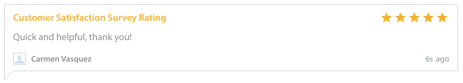 The Feedback Bot provides a custom request message to prompt your end users to submit feedback about their experience with the Agent once the Issue has been resolved. The end-user can complete the survey in-line within the Web Chat window, as seen below: