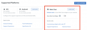 Navigate to Settings > App Settings > select the app you’d like to configure, then click on Configure Button in Web Chat Platform Card.