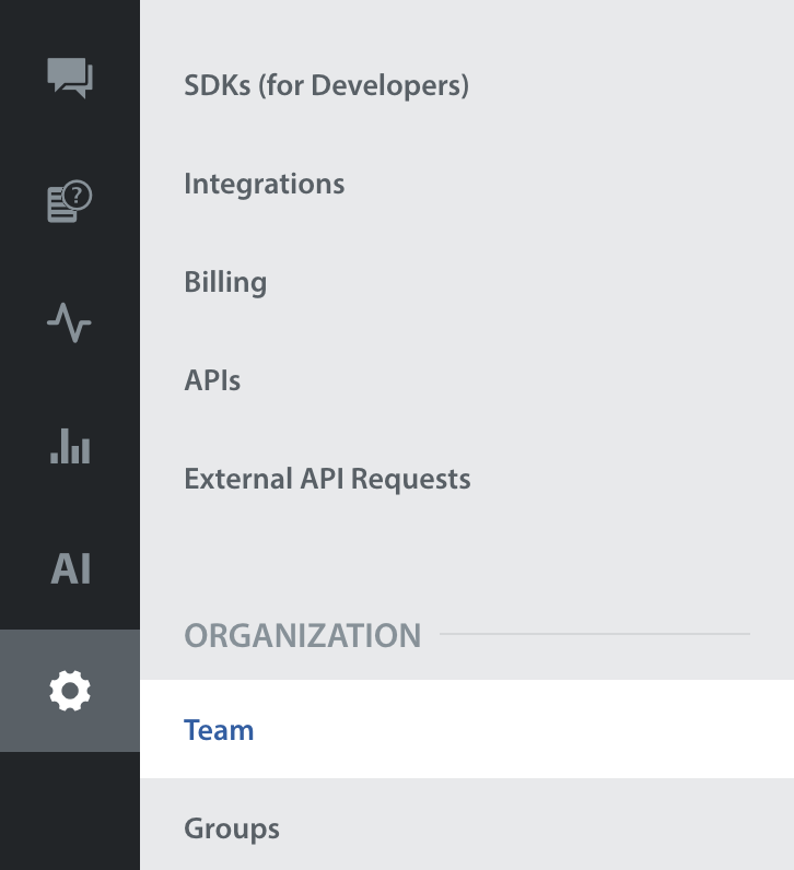 1. Click the Settings icon in the left navigation bar from the Dashboard, then under Organization, click ‘Teams’