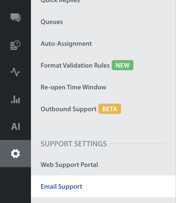 From here, scroll down to ‘Email Support’ under Support Settings.