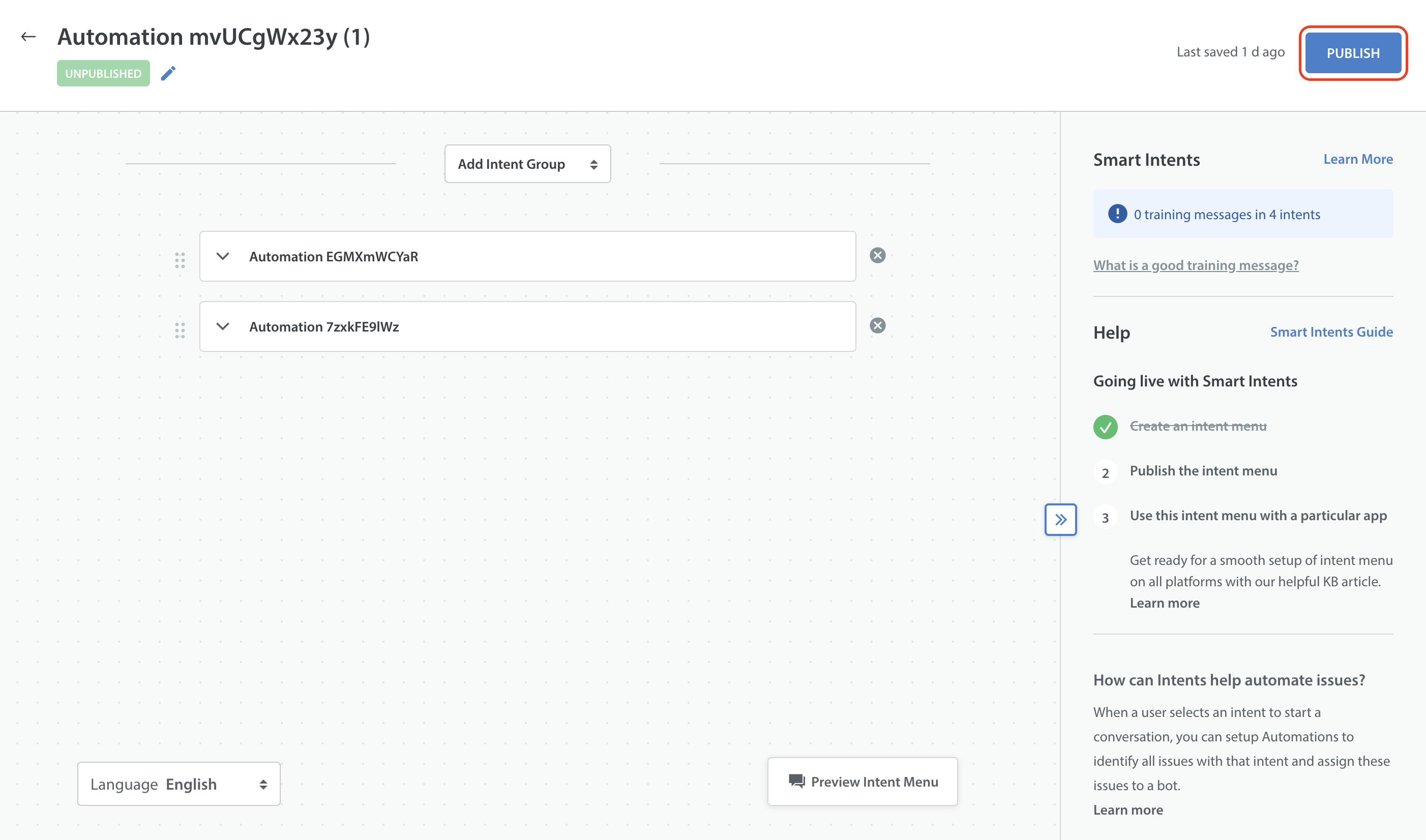 You will be directed to the duplicated intent menu page, where you can configure and choose to publish the intent menu.