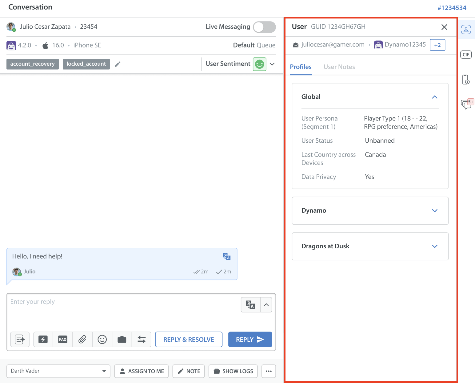 With the new identity system enabled, your staff—agents, supervisors, and admins—now benefit from a side-by-side view of conversations alongside relevant “User Context.” This enhancement makes delivering personalized, context-driven service more efficient and effective.