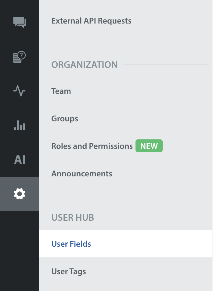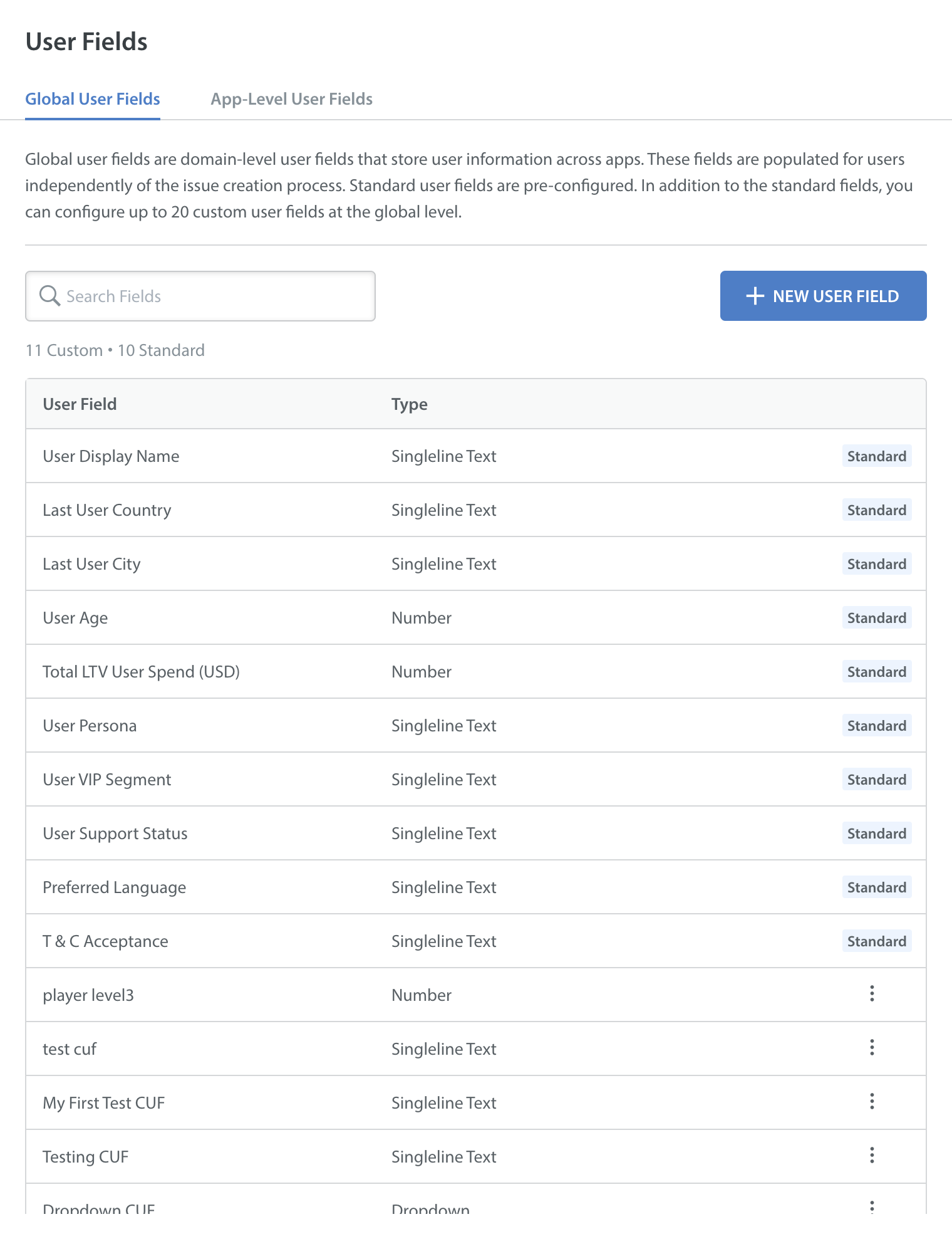 You can configure user fields at global and app levels to store relevant user information. This feature allows you to manage user data more efficiently, enabling agents to access important user context during support interactions.