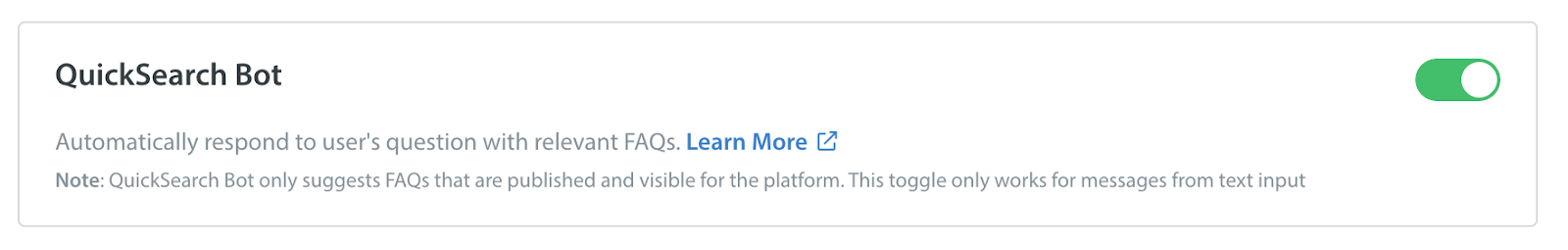 以下のセクションを確認して、ウェブチャットおよびアプリ内ユーザー向けに クイックサーチボットを設定してください。