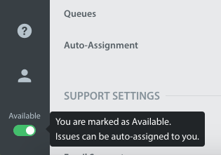 As a note, if one of your Agents happens to walk away from the computer while their Availability is toggled ON, our Availability settings will detect that they are no longer active on the Dashboard and will prevent them from being assigned Issues. The parameters for automatically detecting a change in availability are listed at the end of option 2.