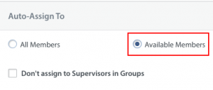 In the Auto-Assignment Rules section, you’ll see the ‘Auto-Assign To’ section on the right side of your Team. Switch the radio box from ‘All Members’ to ‘Available Members’ to ensure Agents will not receive Agents when they are available.