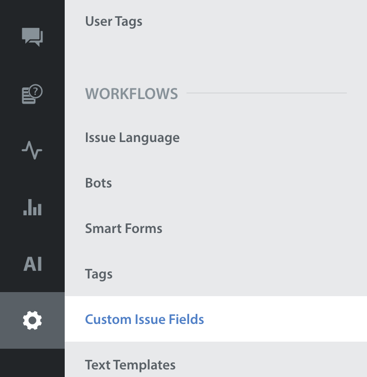 To create a new Custom Issue Field, navigate to Settings > Workflows > Custom Issue Fields.