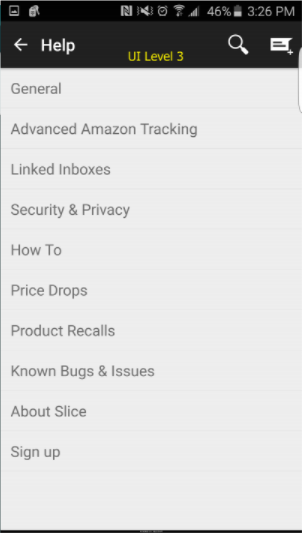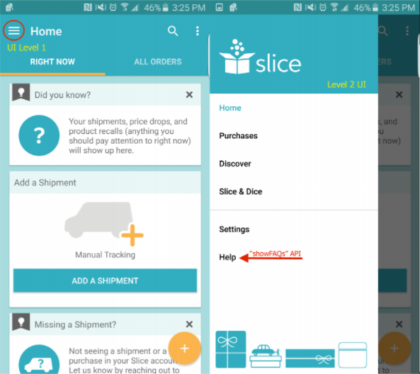 Best Practice: Don’t “bury” help too deep within your app. Make your FAQs stand out and easy to find. In the example below, Helpshift can be called from the second “level” of the UI.