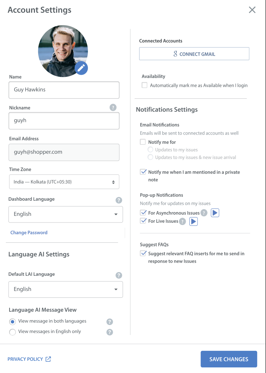 Note: The Default LAI Language is currently applied to Issue conversations.